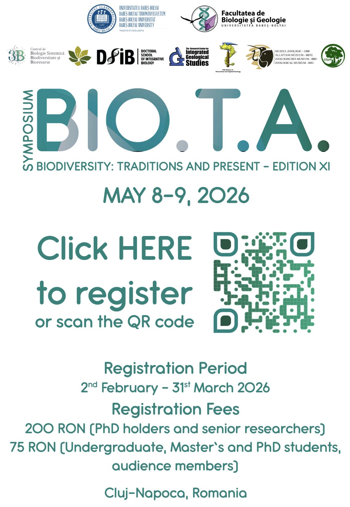The event is hosted by the Faculty of Biology and Geology at Babeș-Bolyai University and will take place in Cluj-Napoca, Transylvania, Romania .