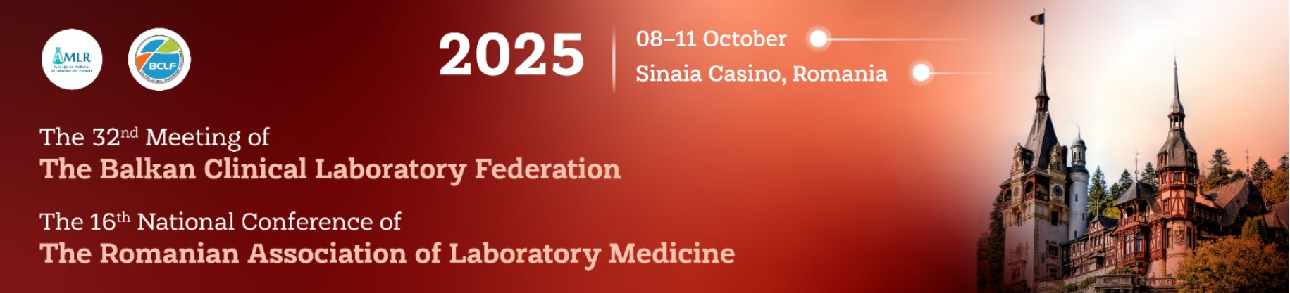 We warmly invite you to participate in the 32nd Meeting of the Federation of Balkan Clinical Laboratories, which will take place alongside the 16th National Conference of the Romanian Association of Laboratory Medicine at Cazino Sinaia, from October 8 to 11, 2025.